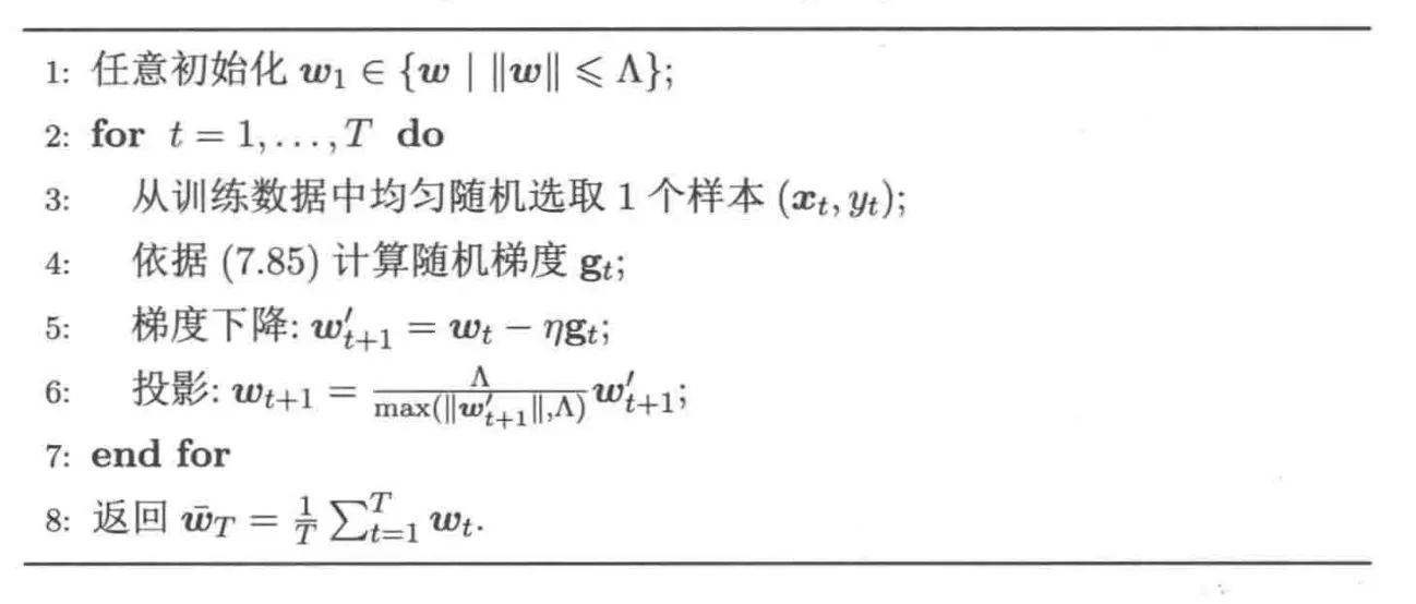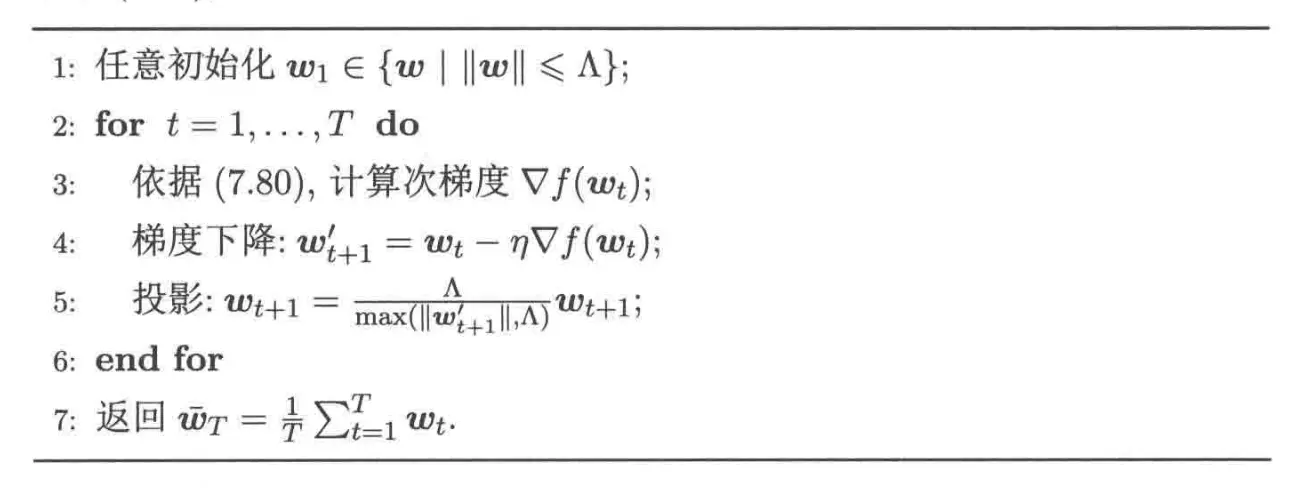 算法的第五行出现了错误,应该是 \(\boldsymbol{w}_{t+1}^{\prime} = \dfrac{\Lambda}{\max(\lVert \boldsymbol{w}_{t+1}^{\prime}\rVert, \Lambda)} \boldsymbol{w}_{t+1}^{\prime}\)。