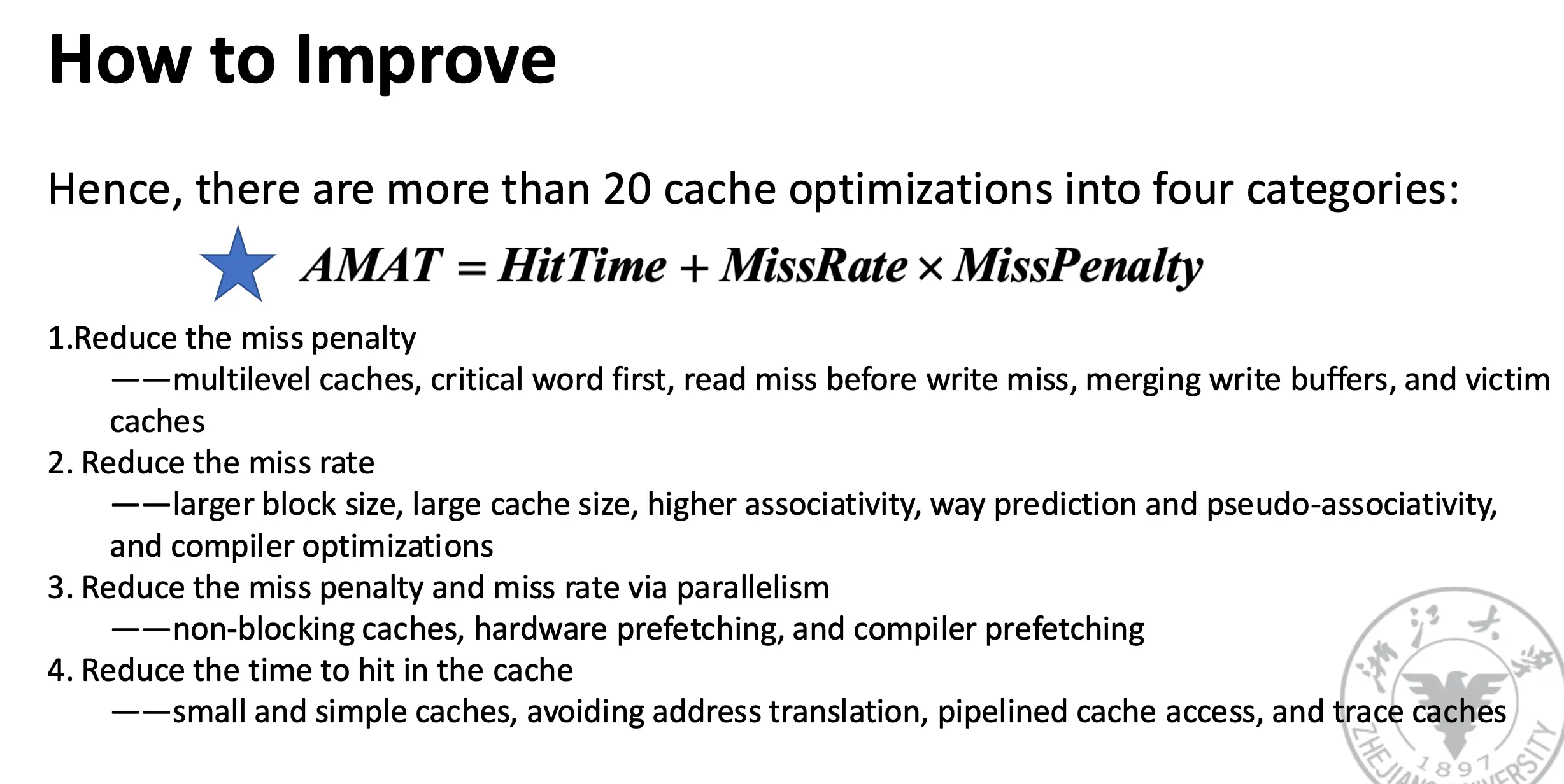 - Reduce the miss rate;