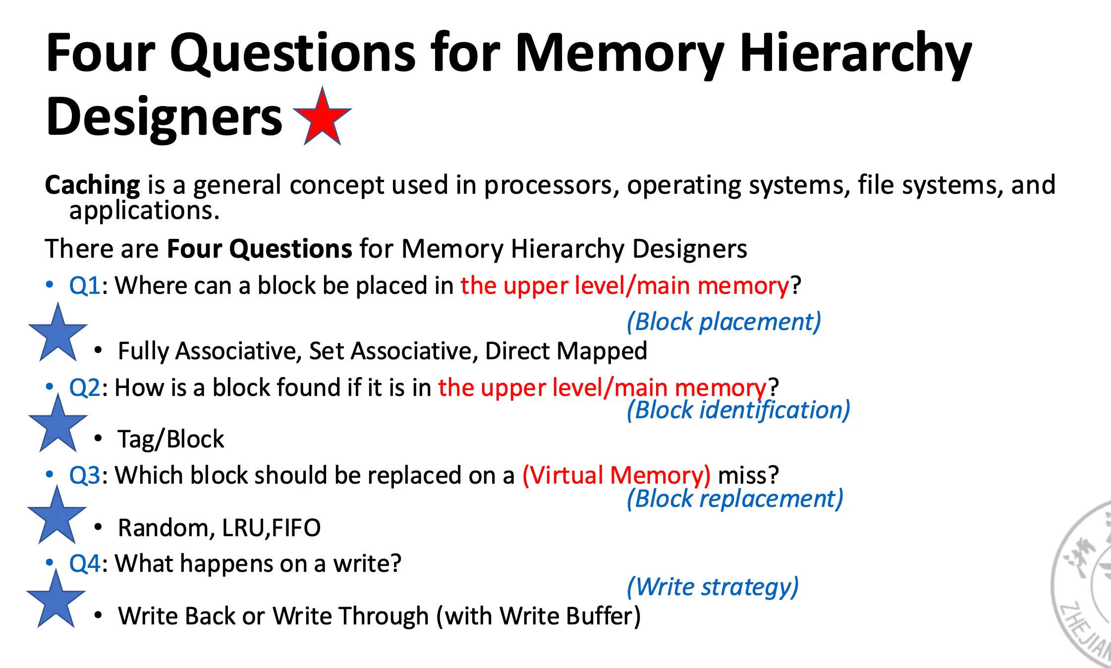 - 地址离开处理器后访问的第一个/最高的内存层次结构;