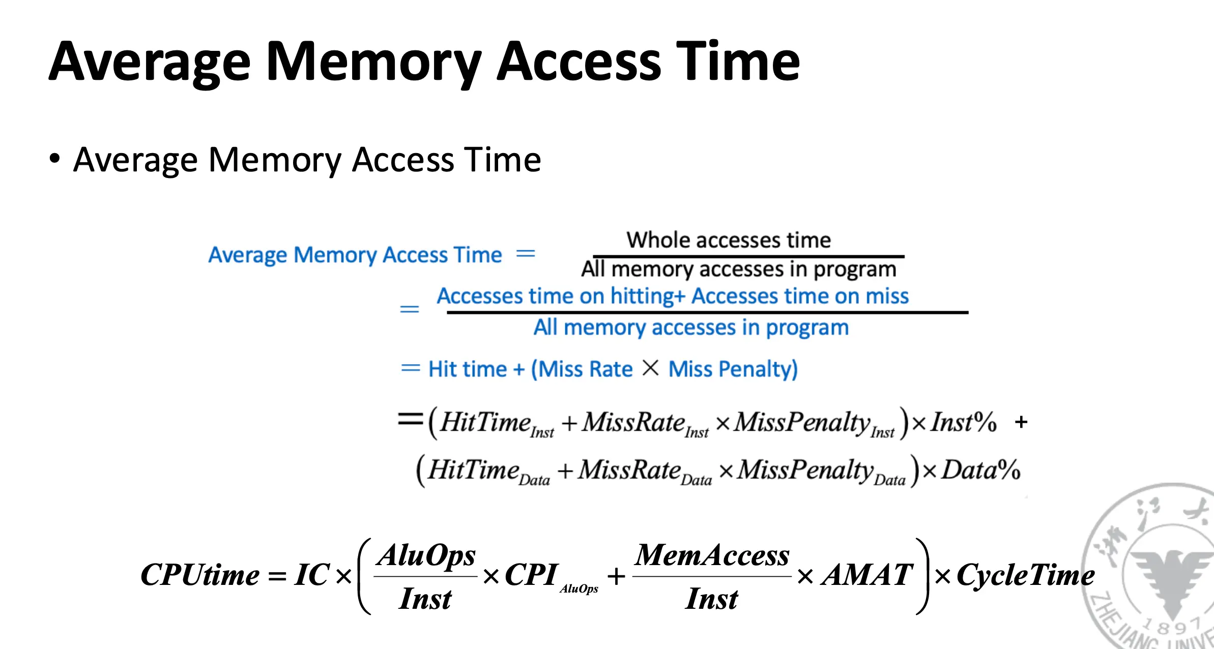 Cache Hit/Miss:处理器能/不能在缓存中找到请求的数据。性能指标包括:命中率/Hit Rate、缺失率/Miss Rate、命中时间/Hit Time、缺失惩罚/Miss Penalty。